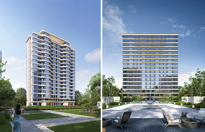 建筑立面上為體現(xiàn)立面的豐富性,分區(qū)設(shè)計。立面呼應(yīng)潺潺流水意向,采用弧形優(yōu)雅曲線,追求建筑柔美靈動之感。綜合社區(qū)服務(wù)中心則在未來感與現(xiàn)代感的基礎(chǔ)上,注重增加動感和活力,彰顯時尚城市品位。