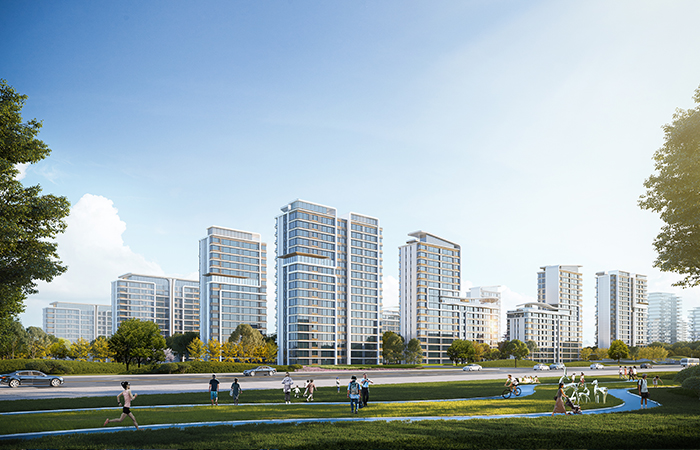 項目對太平河景觀空間進行最大化的導(dǎo)入,以“三月春山,碧水粼波”為核心設(shè)計理念,采用開放式建筑布局,確保項目界面與太平河景觀形成良好互動,分區(qū)分段設(shè)置沿河視線通廊,同時形成東西向景觀漫步系統(tǒng),增加片區(qū)的呼吸空間和街道界面層次。同時項目融入2 大設(shè)計專利,運用高品質(zhì)材料打造全幕墻外裝體系,構(gòu)建城市封面之作,讓人們置身于太平河畔的美好生態(tài)環(huán)境中,感受建筑的質(zhì)感和生命力。