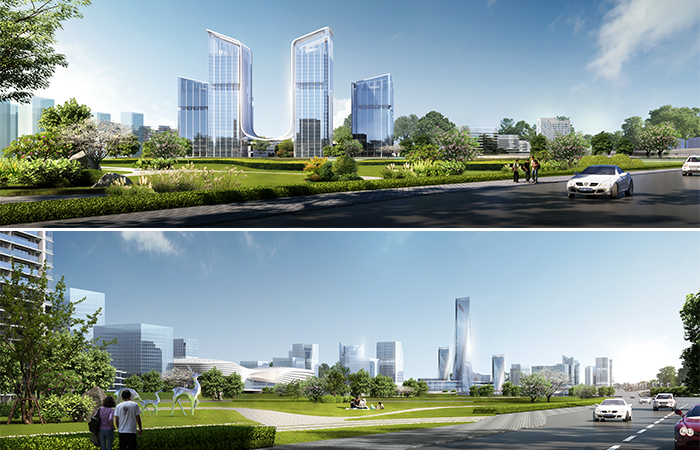 方案選取太平河片區(qū)地標建筑為制高點,結合友誼大街、復興大街和太行大街三個重要城市節(jié)點,形成“一主三副、高低錯落、變化有致”的城市天際線,重要節(jié)點處布置開敞空間和高層建筑組團,凸顯街道界面,豐富空間層次,視覺感受絕佳,彰顯城市輪廓的特征與標識性,譜寫出一副城市風光影畫。
