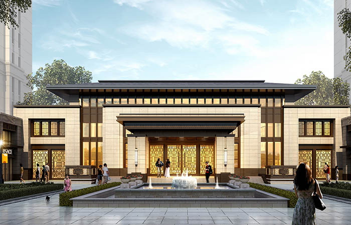 建筑風(fēng)格為新中式與現(xiàn)在相結(jié)合,注重人視尺度,立面顏色主要為米色和褐色,單體設(shè)計(jì)端莊典雅,簡(jiǎn)潔大方。