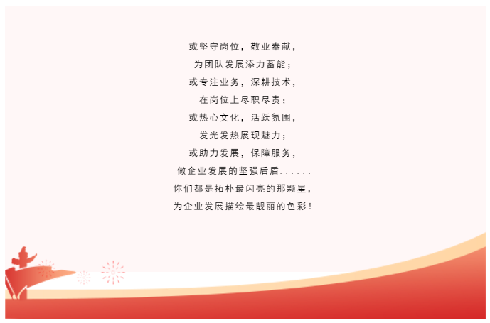 今天,我們表彰優(yōu)秀,鼓勵先進(jìn),為每一個努力追夢成長進(jìn)步的拓樸戰(zhàn)友點贊加冕!