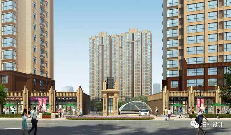 項目建筑采用ART-DEC0建筑風格,盡顯華貴堅實、 細部裝飾細膩豐富。通過采用剛柔并濟的豎向線條,建筑高聳向上的外立面,體現出建筑奢華、精致、大氣的氣度,能夠表達出居者不斷向上,積極進取的精神。