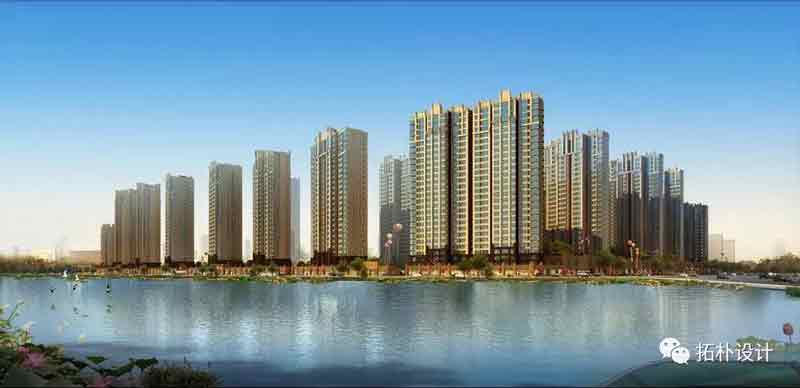 在功能布局上以景觀資源最大化的原則,創(chuàng)造可以戶戶皆有景觀的便利條件,使每種產品形態(tài)都獲得最佳的景觀配置。整體呈短板式布局,建筑南北方向盡量錯位布置,空間通透;沿江局部呈點式布局,消解板樓的壓抑感覺,提高戶型素質的同時兼顧城市景觀。