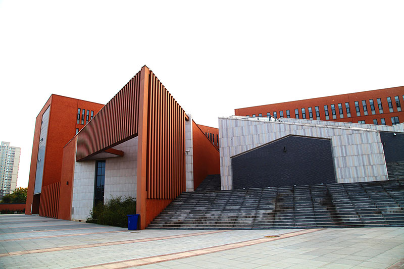 立面采用校園常用的紅磚手法,搭配鋼架及藍(lán)色玻璃幕,將傳統(tǒng)與現(xiàn)代相互結(jié)合,在給學(xué)生帶來(lái)濃厚傳統(tǒng)底蘊(yùn)的同時(shí)又不失現(xiàn)代創(chuàng)新的文化氣息。