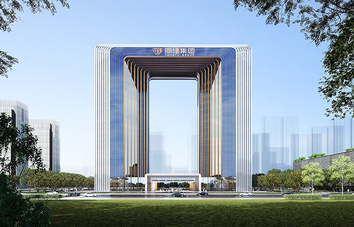 項目位于正定新區(qū)“四軸五心”的中央商務辦公區(qū)域內(nèi),隆興路商務軸北側(cè),由兩棟塔樓組成,功能為展廳、會議和辦公,總建筑面積5.8萬 m2,其中地上建筑面積4.2萬 m2。兩棟塔樓均為地下一層,地上21層,裙房2層,建筑高度100.85m,結(jié)構(gòu)高度86.700m。兩棟塔樓平面為八邊形,兩塔樓最近點距離約36.6m,最遠點距離約108.1m。建筑頂部設置八邊形造型和空中連廊與塔樓連為一體,“大道至簡,天下大同”,形成大底盤雙塔連體建筑。