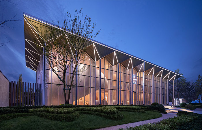 規(guī)劃結(jié)構(gòu)上,利用道路將整體用地劃分為東西兩個(gè)組團(tuán),西側(cè)地塊較為規(guī)整,在地塊中間部分設(shè)置景觀中軸,將幼兒園設(shè)置在采光良好的南側(cè)。建筑立面采用白色與駝色相結(jié)合,打造簡約現(xiàn)代的建筑立面造型,通過對(duì)立面分割加強(qiáng)建筑橫向視覺感,運(yùn)用精致簡約的線腳來體現(xiàn)建筑的典雅與華貴,彰顯建筑品質(zhì)。