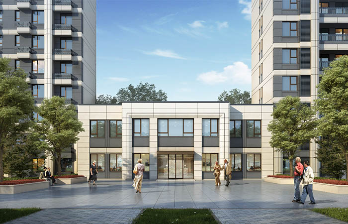 建筑屋頂進(jìn)收分設(shè)計(jì),柔化頂界面與街道的空間關(guān)系改善單調(diào)的天際線關(guān)系。在建筑屋頂部分進(jìn)行了頂部深化設(shè)計(jì),通過(guò)屋面頂部搭框架及格柵。突出本小區(qū)的特色與個(gè)性,同時(shí)也彰顯了都市的勃勃生機(jī)與昂揚(yáng)氣勢(shì)。立面以簡(jiǎn)潔的橫向線條,精致細(xì)節(jié)的刻畫,簡(jiǎn)約大氣而不失細(xì)膩。立面采用橫向線條凸出建筑張力,外立面材料簡(jiǎn)約,細(xì)節(jié)精致,簡(jiǎn)約現(xiàn)代;多層線條呈現(xiàn)的密檐意向,別具東方韻味。