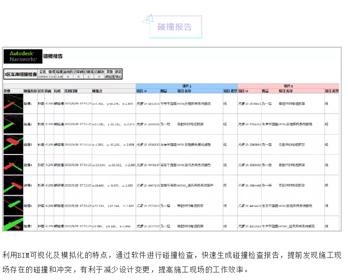 利用BIM可視化及模擬化的特點,通過軟件進行碰撞檢查,快速生成碰撞檢查報告,根據(jù)報告調整管線,