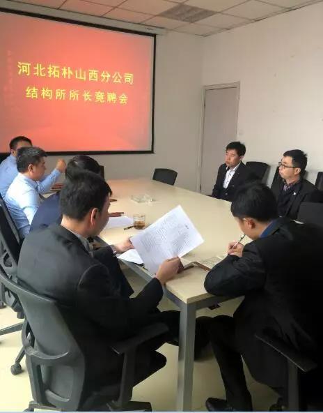 2019年2月26日,河北拓樸山西分公司結(jié)構(gòu)所所長(zhǎng)競(jìng)聘會(huì)在山西分公司召開了。來自山西分公司的王巖松、李志輝參加了竟聘演講和現(xiàn)場(chǎng)答辯。