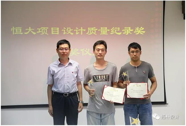 導語:2018年7月30-31日,河北拓樸建筑有限公司舉行了恒大項目設(shè)計質(zhì)量記錄獎、恒大規(guī)劃考試個人優(yōu)秀獎、恒大優(yōu)秀設(shè)計團隊表彰會。對建筑、結(jié)構(gòu)、給排水、暖通、電氣專業(yè)及相關(guān)人員進行表彰。