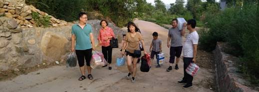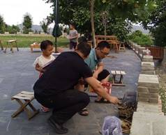 夕陽西下,全員到達村西廣場,休整之暇,孩子開心的跑到邊上撿石子玩耍。
